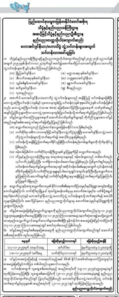 နည်းပညာတက္ကသိုလ်(ကျောက်ဆည်) မဟာအင်ဂျင်နီယာ/မဟာသိပ္ပံဘွဲ့သင်တန်းများအတွက် သင်တန်းသားခေါ်ယူခြင်း October 24, 2025 Category: News & Events Leave a comment