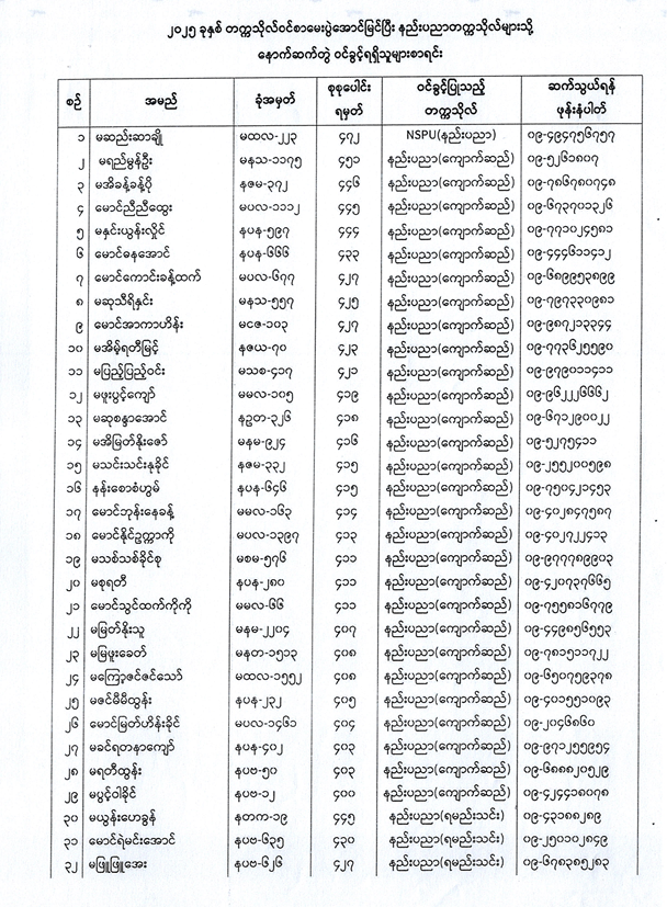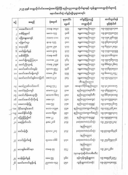 နည်းပညာတက္ကသိုလ်(ကျောက်ဆည်)တွင် နောက်ဆက်တွဲ တက္ကသိုလ်ဝင်ခွင့်ရ စာရင်း