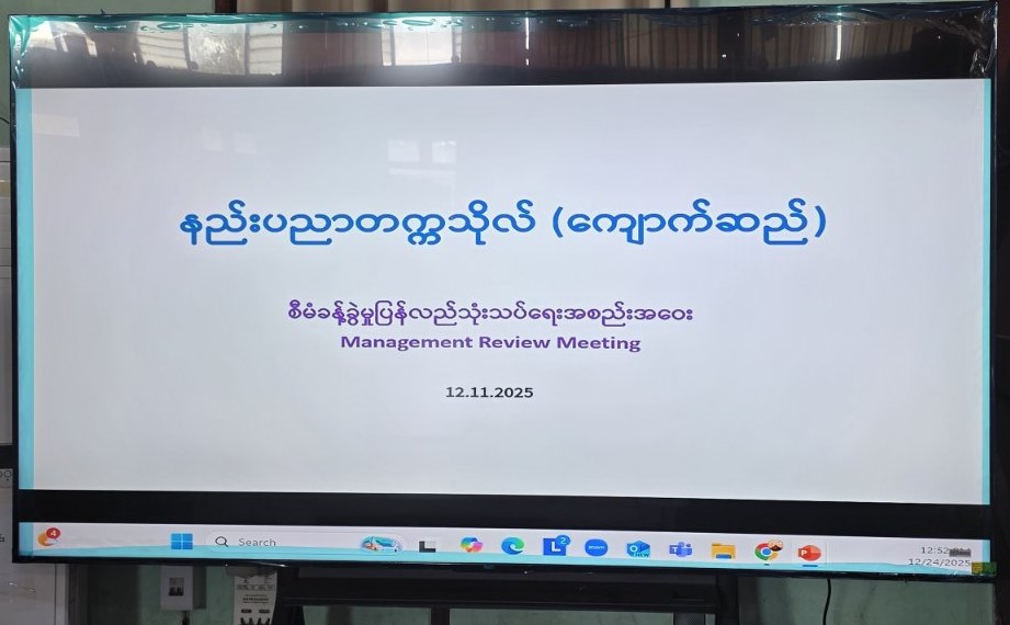 စီမံခန့်ခွဲမှုပြန်လည်သုံးသပ်ရေးအစည်းအဝေး ကျင်းပပြုလုပ်ခြင်း December 24, 2025 Category: News & Events Leave a comment