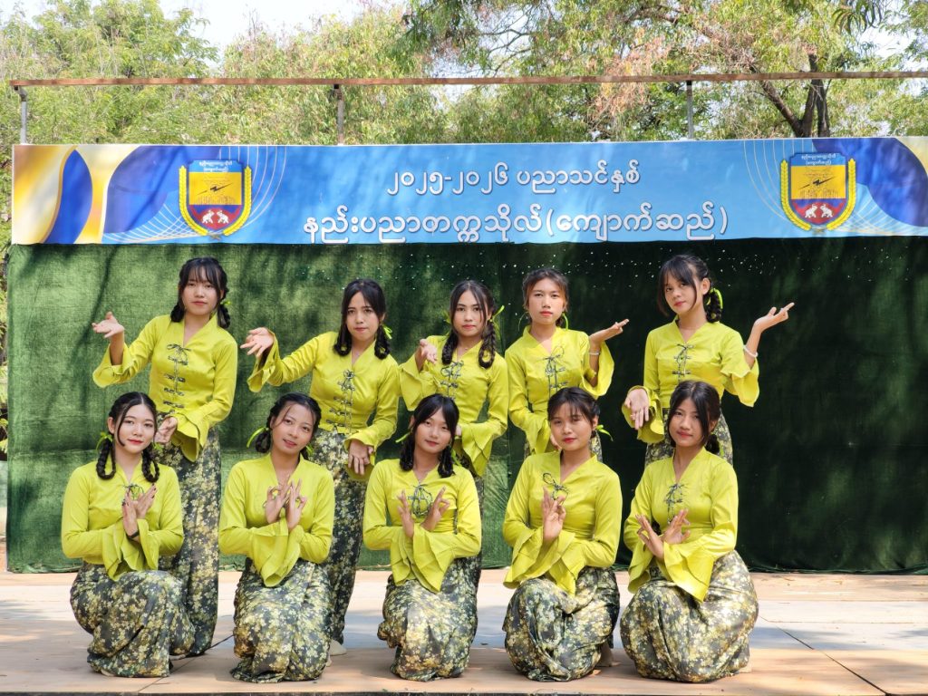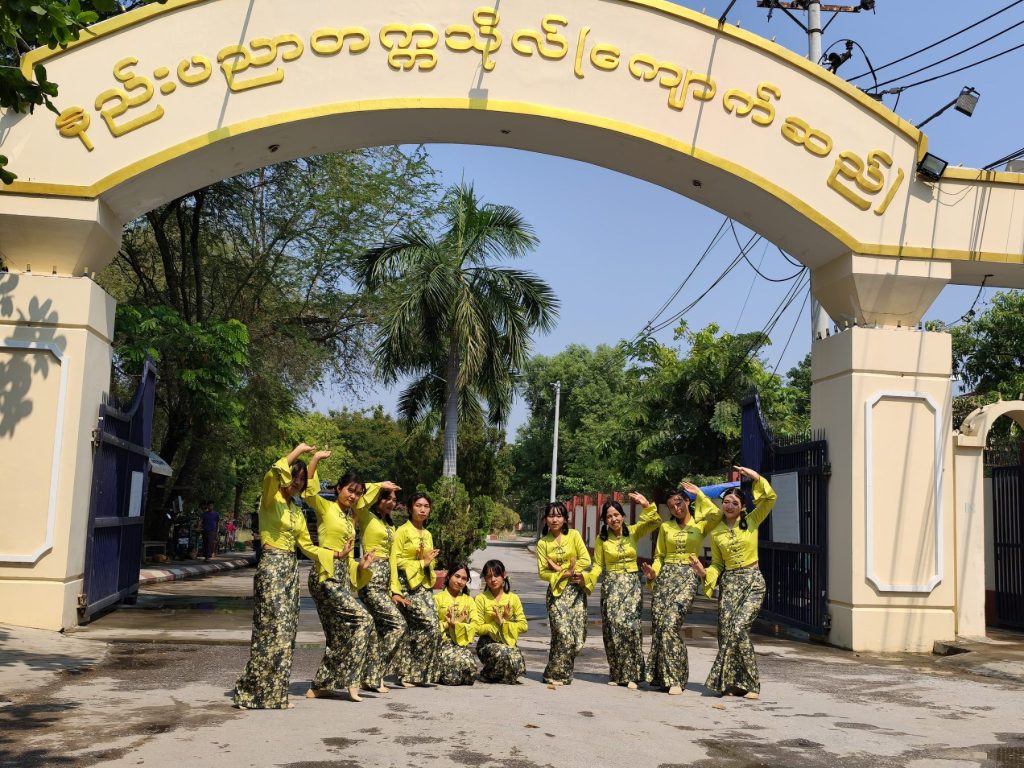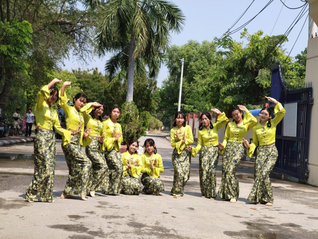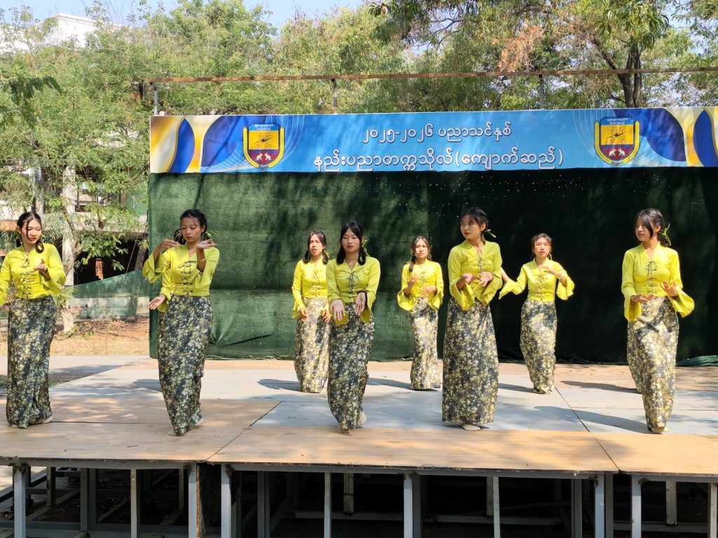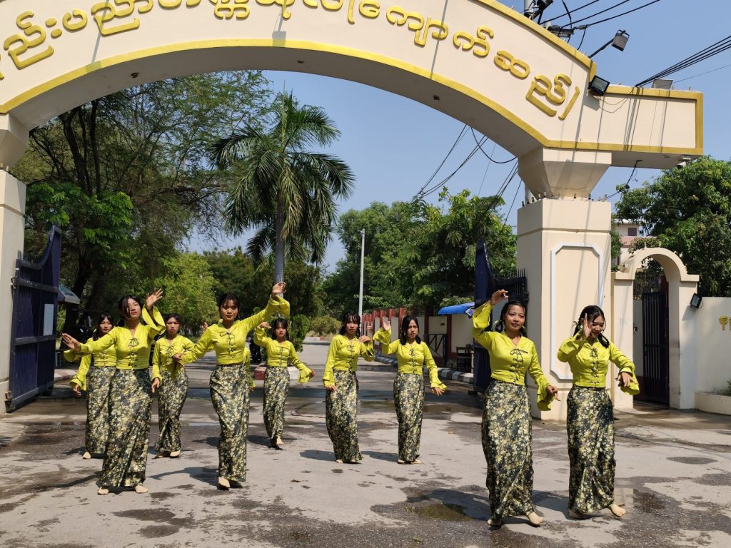နည်းပညာတက္ကသိုလ်(ကျောက်ဆည်) နှင့်အစိုးရစက်မှုလက်မှုသိပ္ပံတို့မှသင်္ကြန်ယိမ်းအက လှပျိုဖြူလေးများအဖွဲ့