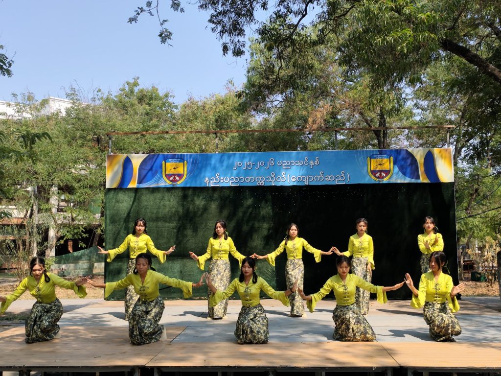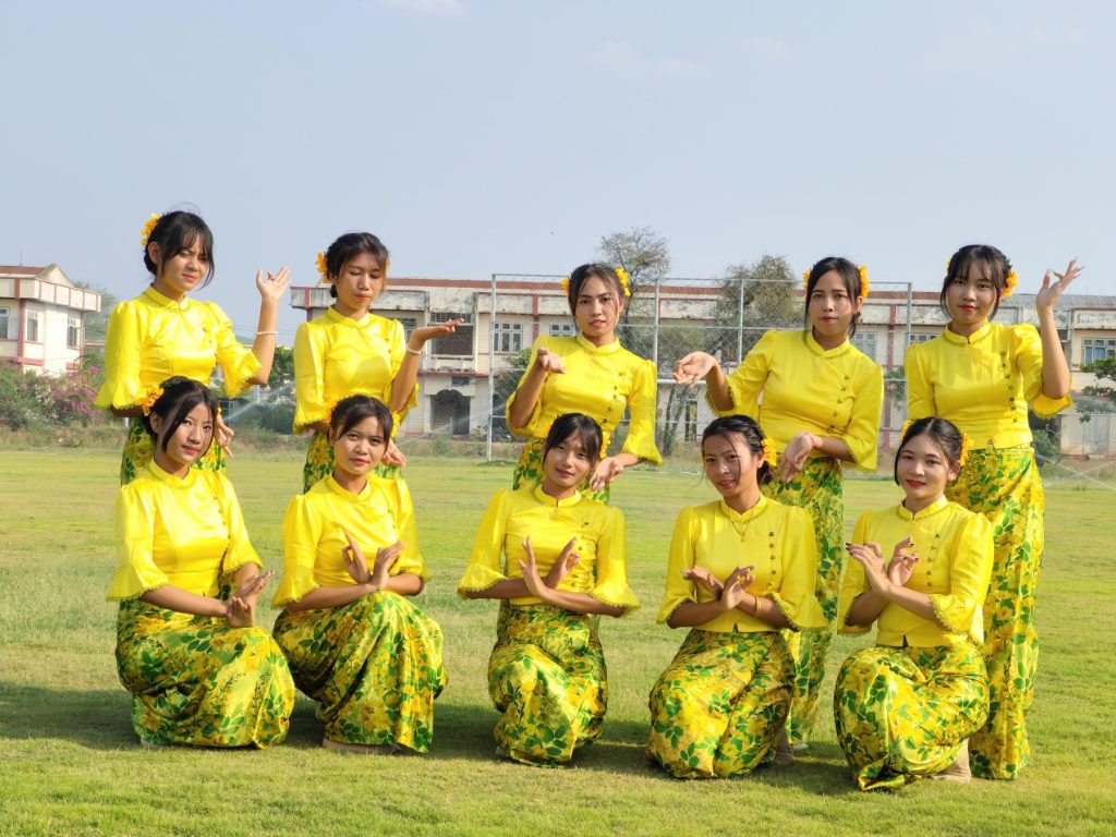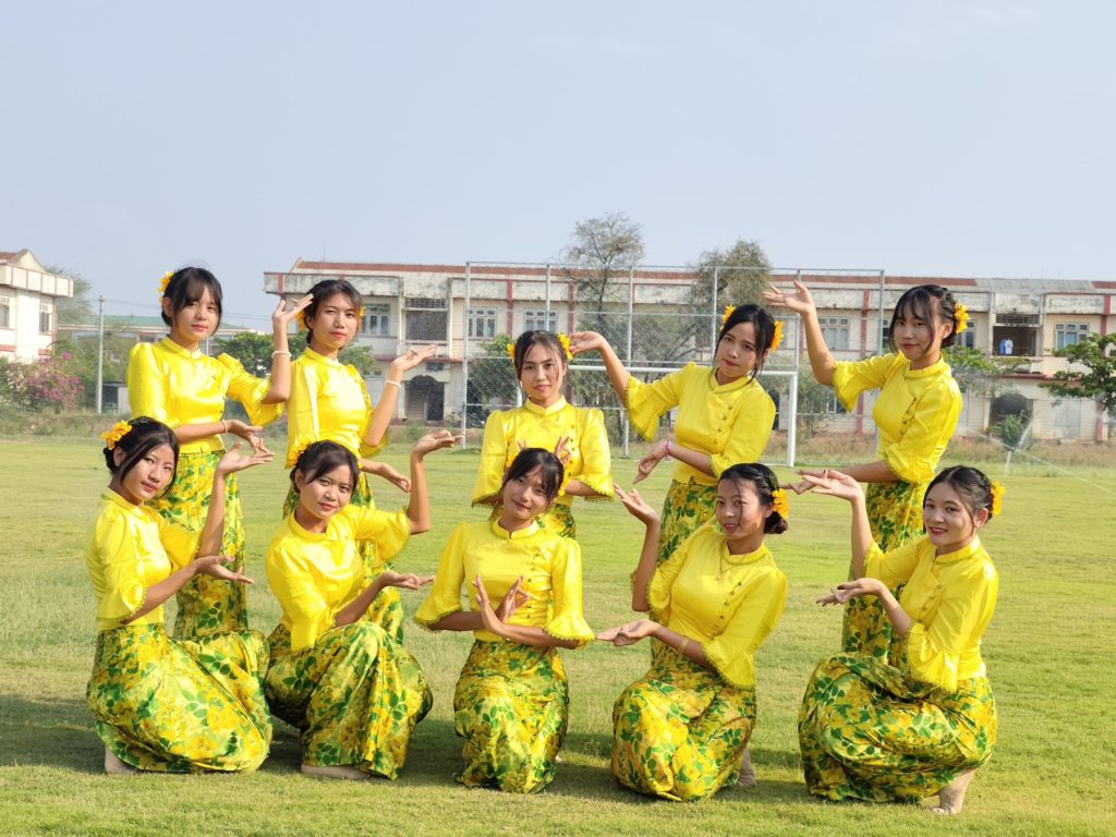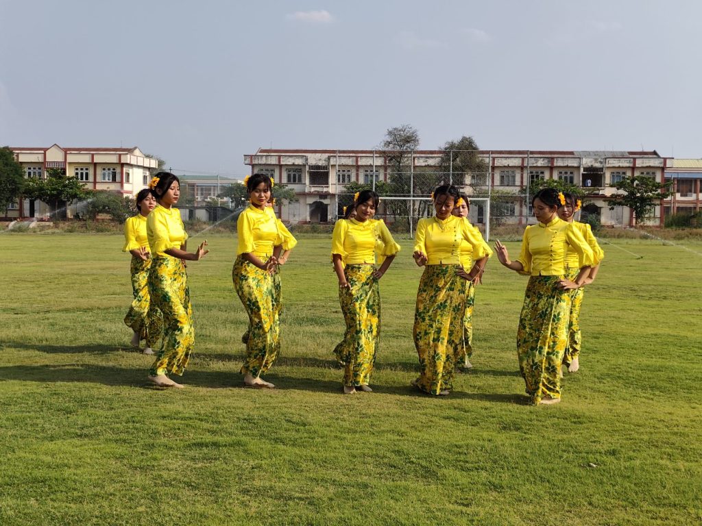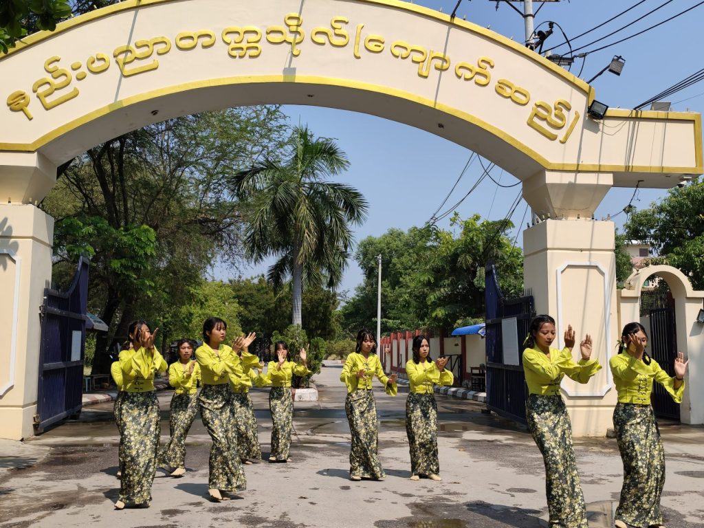 နည်းပညာတက္ကသိုလ်(ကျောက်ဆည်) နှင့်အစိုးရစက်မှုလက်မှုသိပ္ပံတို့မှသင်္ကြန်ယိမ်းအက လှပျိုဖြူလေးများအဖွဲ့